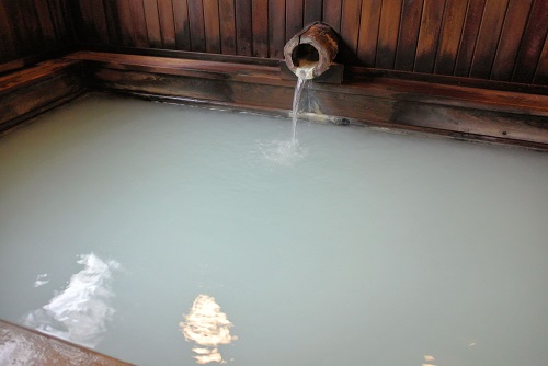 源泉掛け流しで、泉質は酸性硫黄泉(含石膏、酸性硫化水素泉・緊張低張性温泉)。