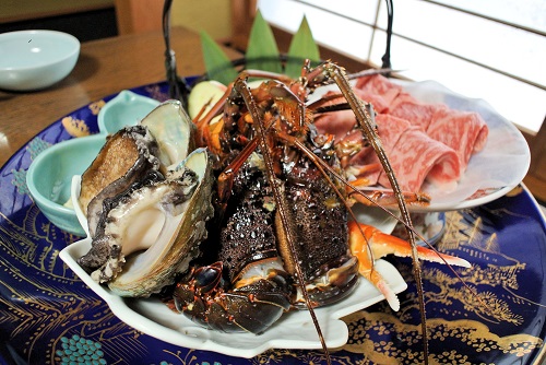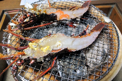 炭火は伊勢海老・あわび・和牛という贅沢な三点セット。
