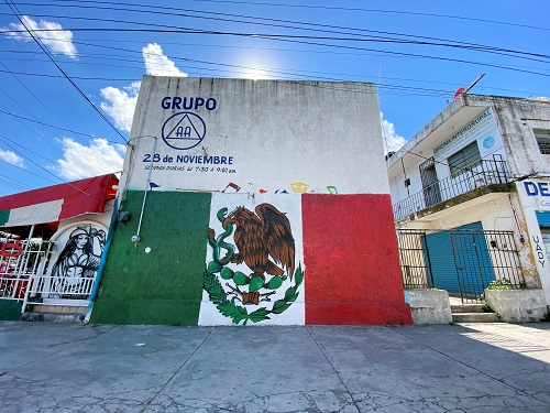 街中で見かけた国旗の壁画。カッコいいです。