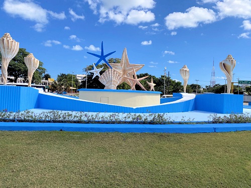 ロータリーにある貝のオブジェ。これを見るとカンクンに来たな~と思う。