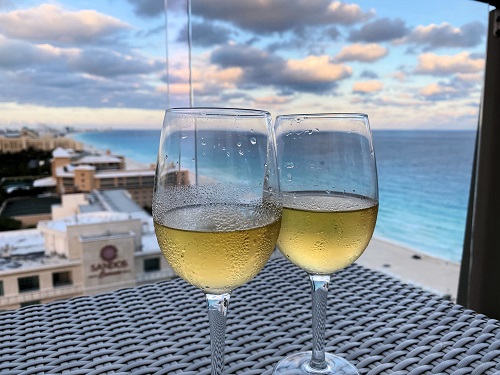 私たちは部屋に戻ってバルコニーでワインを。