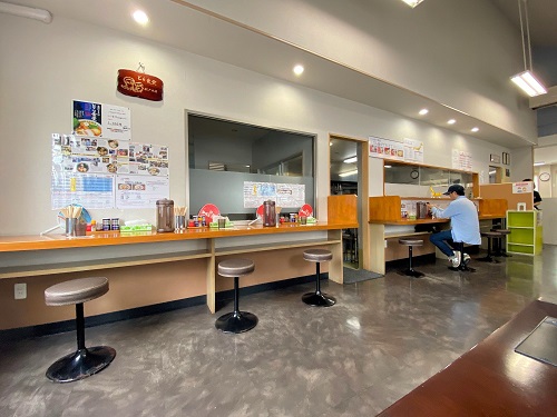 以前よりもカウンターの椅子を減らして間隔を空けてありました。
