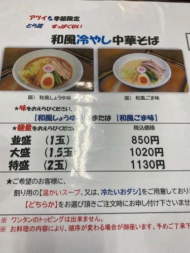 季節限定の「和風冷やし中華そば」もありました。