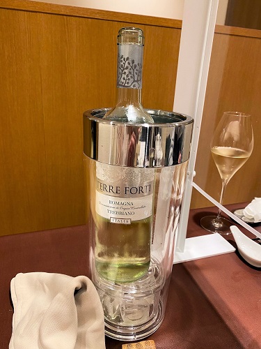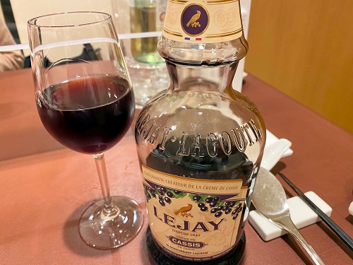 店員さんが「ワインの味変に」と、カシスを入れてキールにしてくれました。
