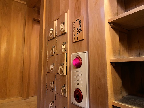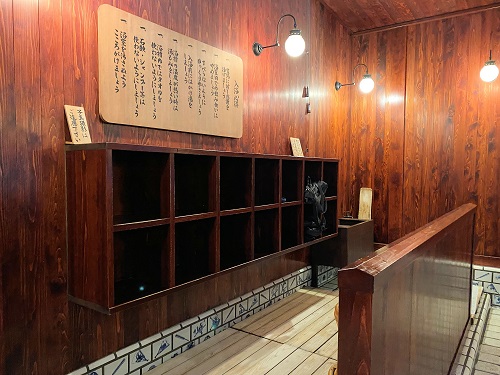 入口を入ると下駄箱と貴重品ロッカーがあります。