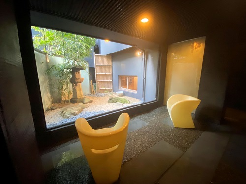 暗めの照明の中、源泉のミストを楽しむよう造られているそう。