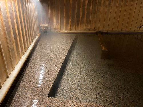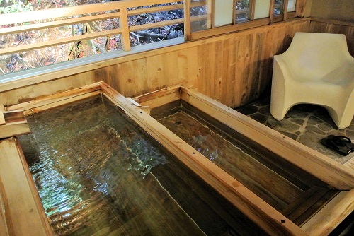 ヒバの壁の浴室は昭和30年代に造られたそうで、古さが良い感じに落ち着きます。
