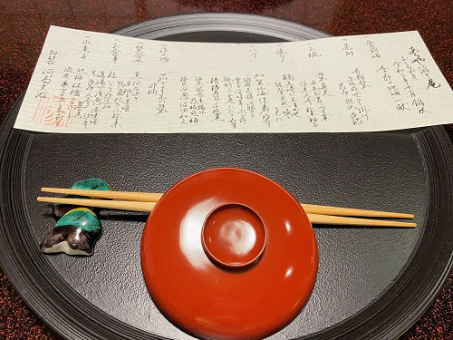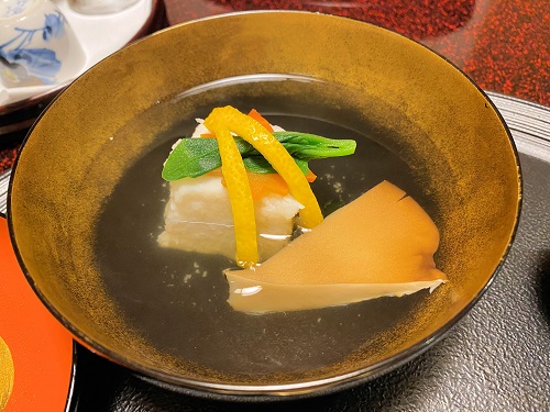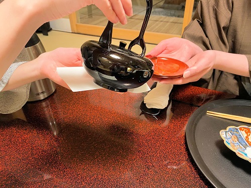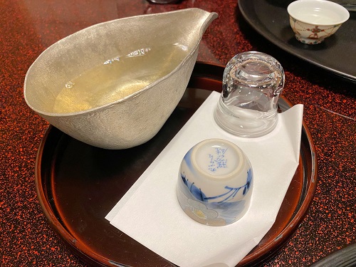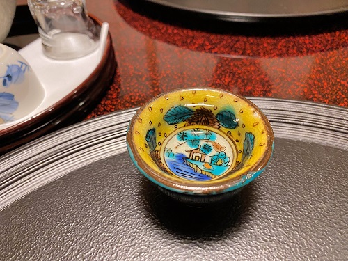 お祝いを兼ねての旅行だったので、宿の心遣いで食前酒を祝いの盃にしてくれました。