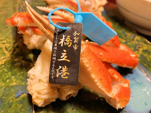 夕食は「ゆで蟹(タグ付き加能蟹)コース」。