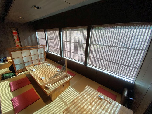 カウンター席と、格子からの光が綺麗な和室がありました。