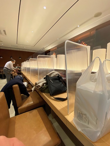 コロナ対応のパーテンションでひとりずつ区切られていました。
