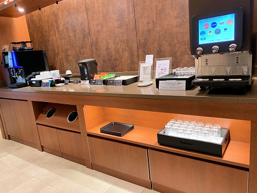 飲み物コーナー。フライト待ちの間生ビールを。