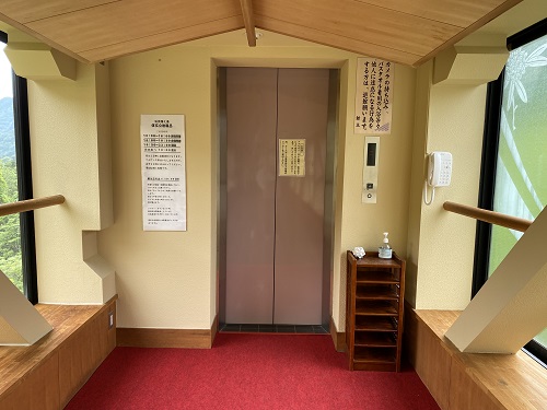専用のエレベーターで下って。