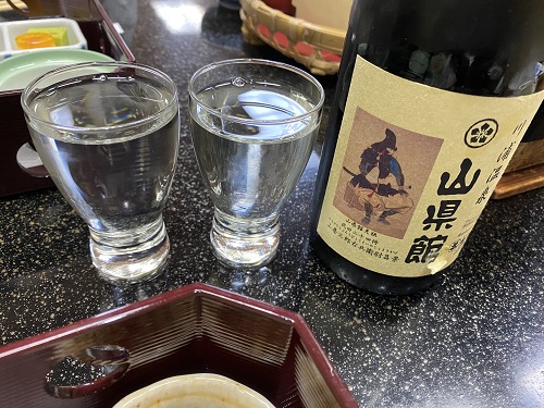 宿のオリジナル日本酒で頂きます。