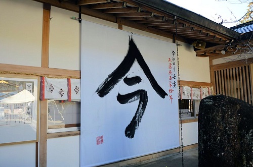 社務所の掲げられた今年の一文字「今」