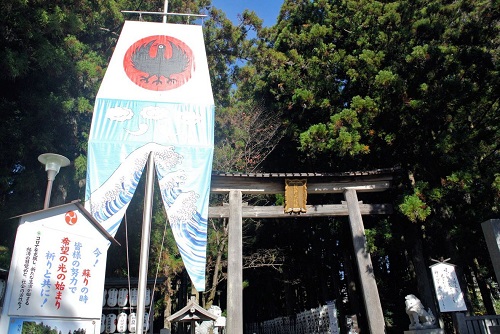熊野の神様のお使い「八咫烏(やたがらす)」の旗が可愛いです。