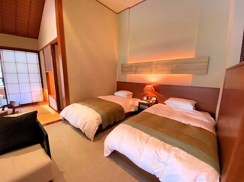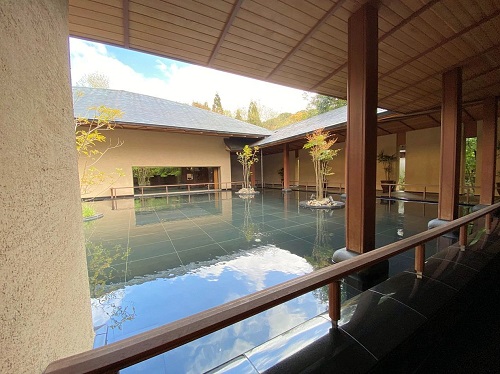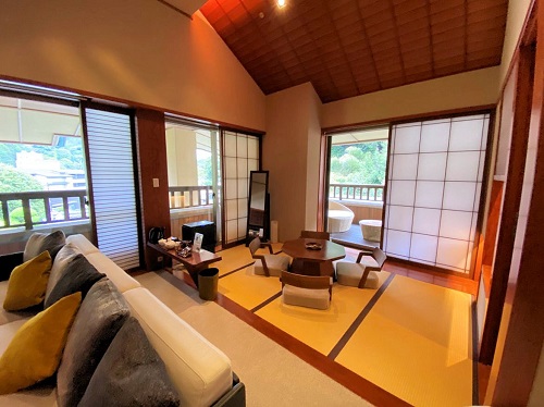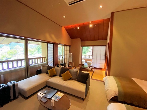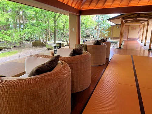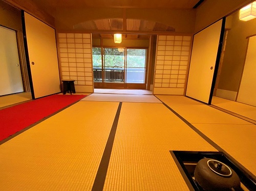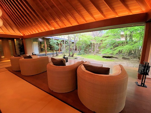 宿の方によるとここの紅葉は一年中緑なのだそう。