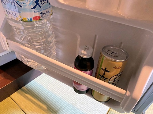 冷蔵庫のお茶とコラーゲンドリンク1本ずつと水はフリーです。