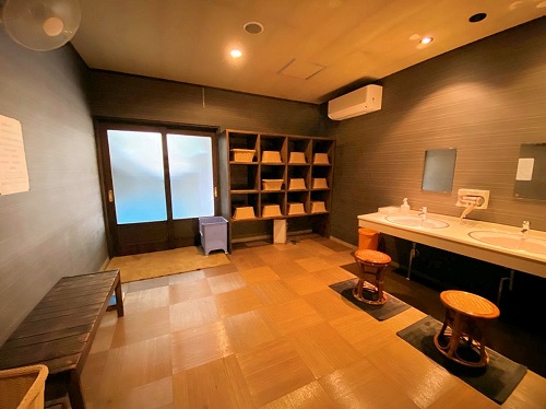 宿に大浴場はありませんが、隣に建つ本館「旅館小天狗」の大浴場に入れます。