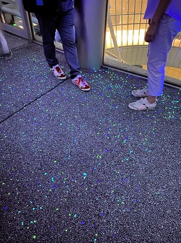ブラックライト(?)が散りばめられた一角があって、色んな人の