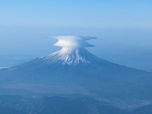 山頂にかかる雲がバームクーヘンの様。