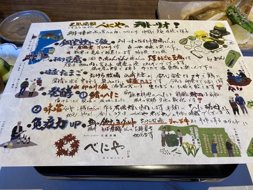 朝食の素材が詳しく書かれたカラフルなメニュー。