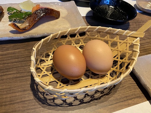 出汁巻玉子の他に生卵もあります。