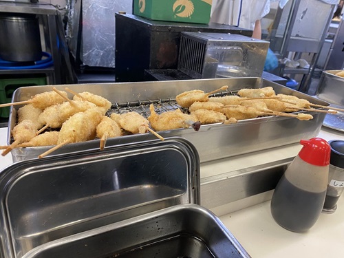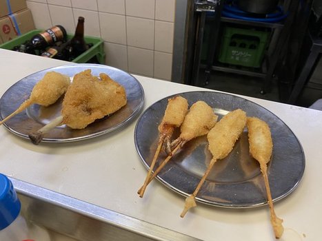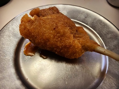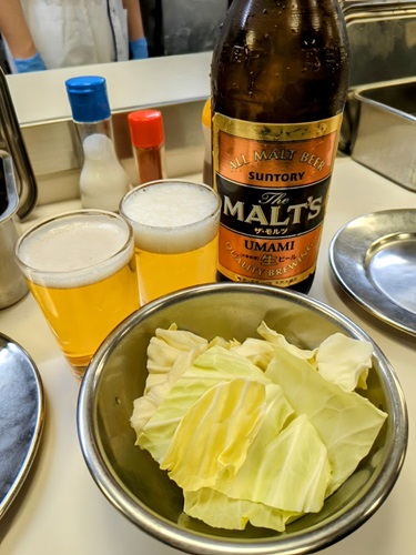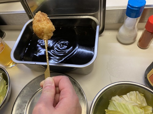 一度付けてソースが足りないときはお通しのキャベツを使ってかけるのだそう。