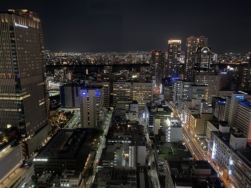 ハシゴ酒を満喫して部屋に戻ったら、大阪の夜景が綺麗でした。