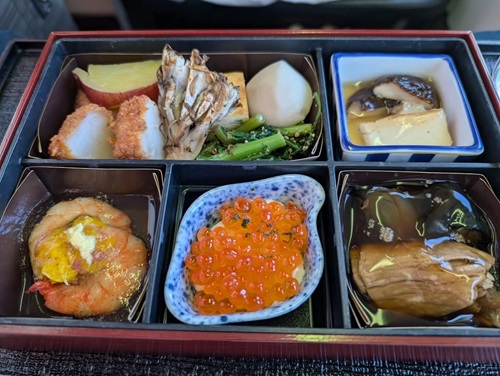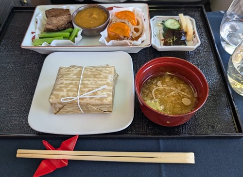 機内食の和食に合わせるのは、本日のジャパニーズウィスキーの白州。