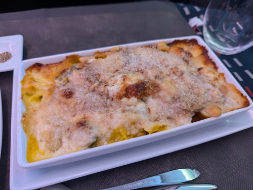 メインは秋鮭の黒トリュフ入りパスタグラタン。