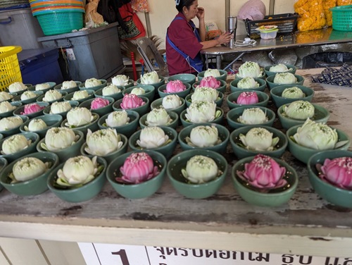入場料400B(≒1700円)を支払い中に入ると、お供えのお花を渡されます。