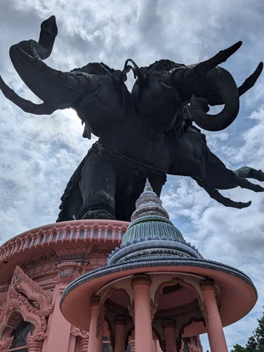 ヒンズー教で神様の乗り物とされる、3つの頭を持つ象エラワンです。