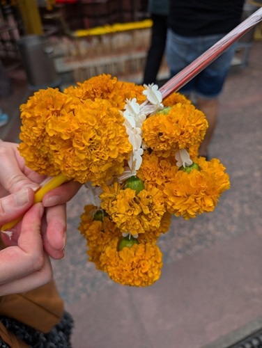 セコく25B(≒100円)の花にしましたが、1000B(≒4500円)が飛ぶように売れていました。