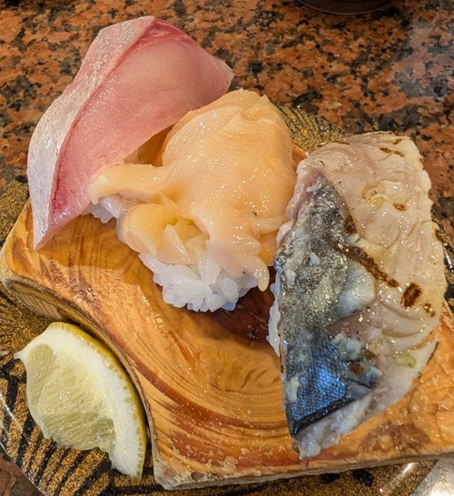 鰤。白バイ貝。鰆の炙り。