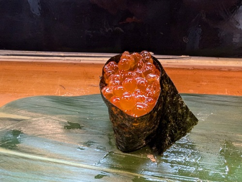 鳥取&島根旅行7 ~浪花鮓~ 旅【国内】 2024.11.232025.02.09 出雲大社のすぐ近くにある「浪花鮓」2年前訪れてすごく美味しかったので再訪しました。(→前回の浪花鮓) かんぱちにぎり特上(9貫)2,580円を注文。 まぐろ イカ表面が炙ってあるので香ばしくて美味しい。 海老 鰺 蟹 のどぐろ温かくてとろける柔らかさ。 鰻こちらも温かくて美味しい鰻です。 最後はいくら この日は七五三参りのお客さんで忙しそうでしたが運よく2席空いていて美味しいお寿司が頂けました。