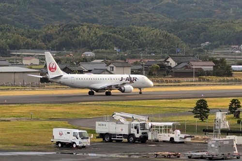 出雲縁結び空港は滑走路のすぐ近くに民家があります。