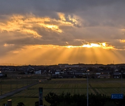 雲の切れ間からの夕日も出雲では神がかって見えます。