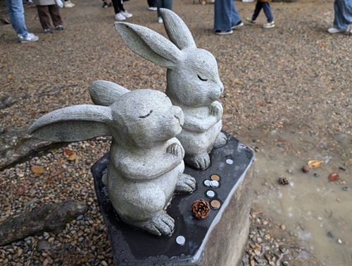 「因幡の素兎」にちなんで、境内には66羽のうさぎ象がいます。