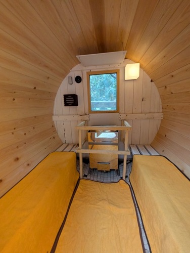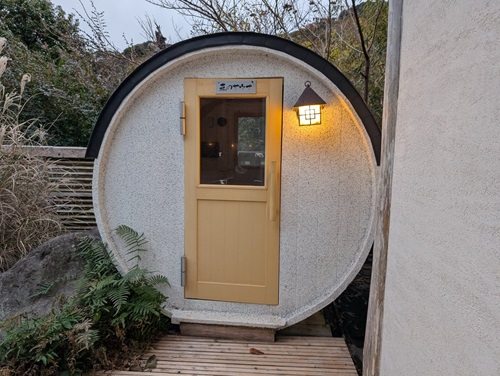 屋外にある丸いサウナ