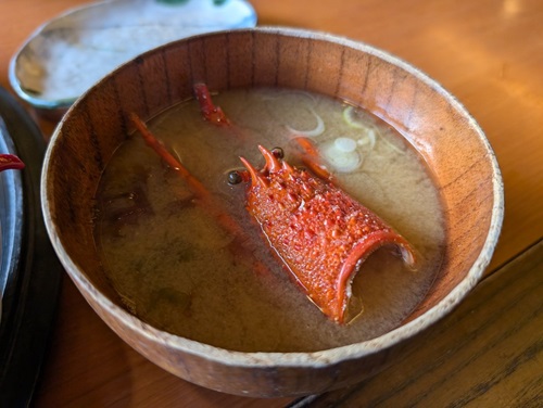 お味噌汁はイセエビの頭入り