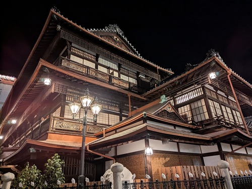 近くにある道後温泉別館の飛鳥乃湯泉もライトアップされています。