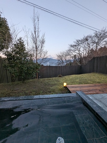 湯船から山並みが見えます。