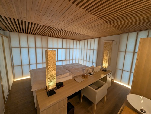 四方の壁は障子。行燈の中にいるみたい。