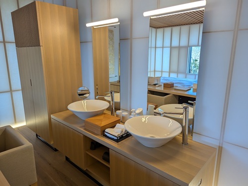 ダブルシンクの洗面台。寝室にあるのは珍しい。