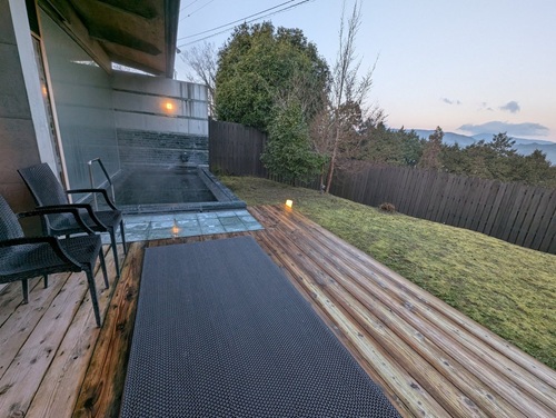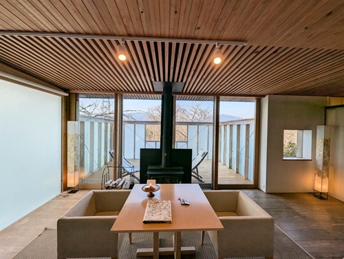部屋は暖炉・檜風呂付きのスイートヴィラ。