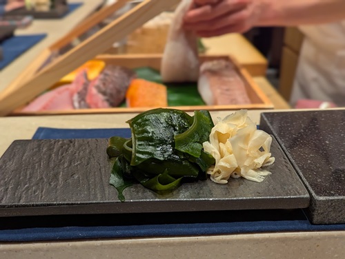 ガリと並んで置かれるワカメ。これがまた美味しい。