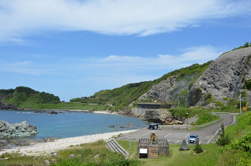 駐車場前の浜辺は白い石が多くて、こちらも綺麗な景色でした。