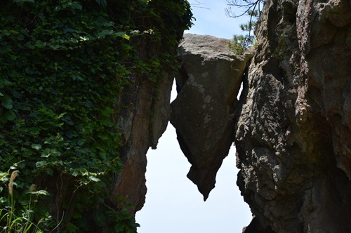 巨石の隙間に挟まった大きな岩。