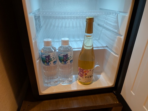 冷蔵庫はフリードリンクで水とワインが用意されていました。